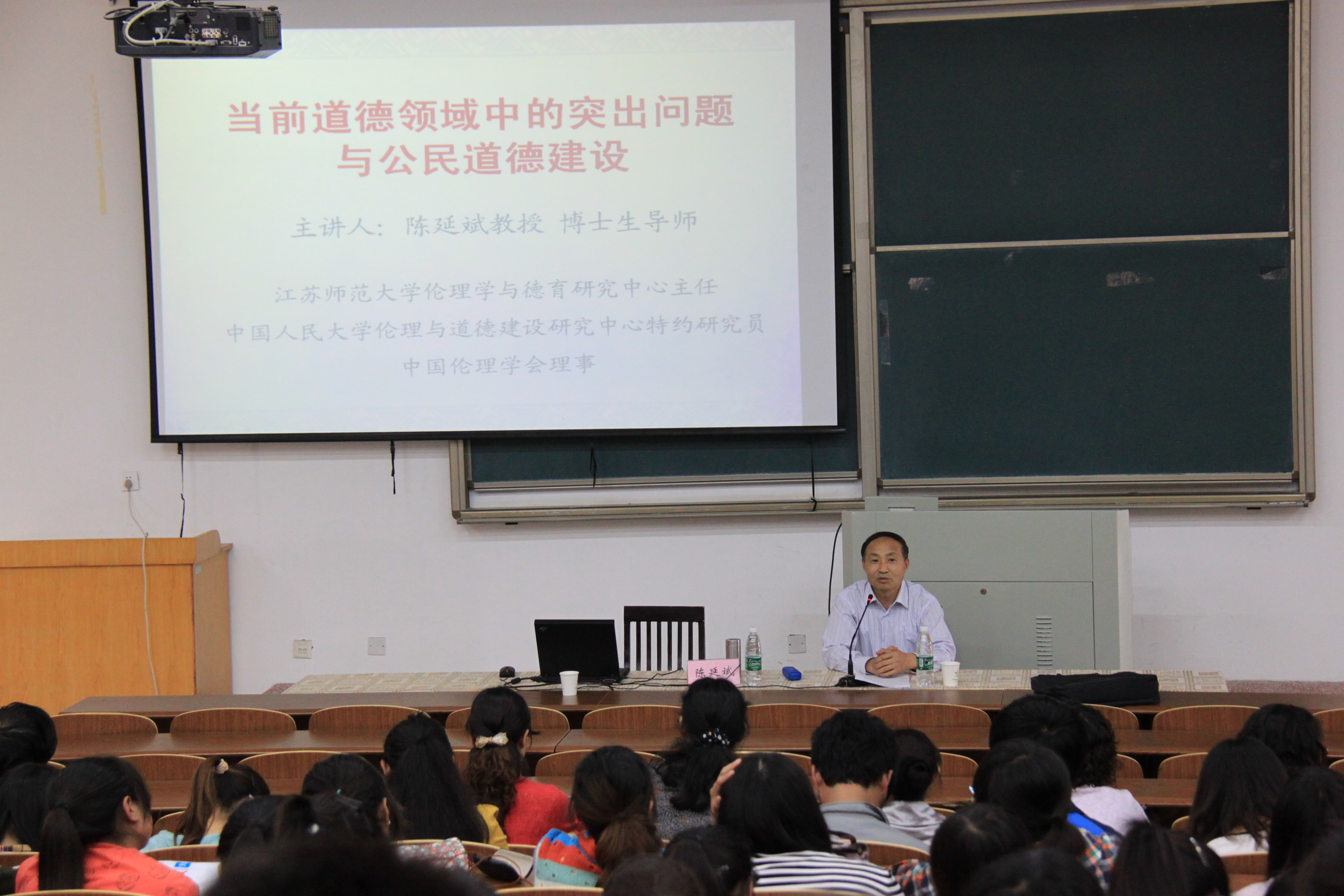 5月29日下午,应bw必威西汉姆联官方网站、科技产业处的邀请,江苏师大伦理学与德育研究中心主任、博士生导师陈延斌教授在大同楼D206为公司师生作《当前道德领域中的突出问题与公民道德建设》的学术报告。报告会由bw必威西汉姆联官方网站经理吉玉泉主持,公司全体师生参加了报告会。