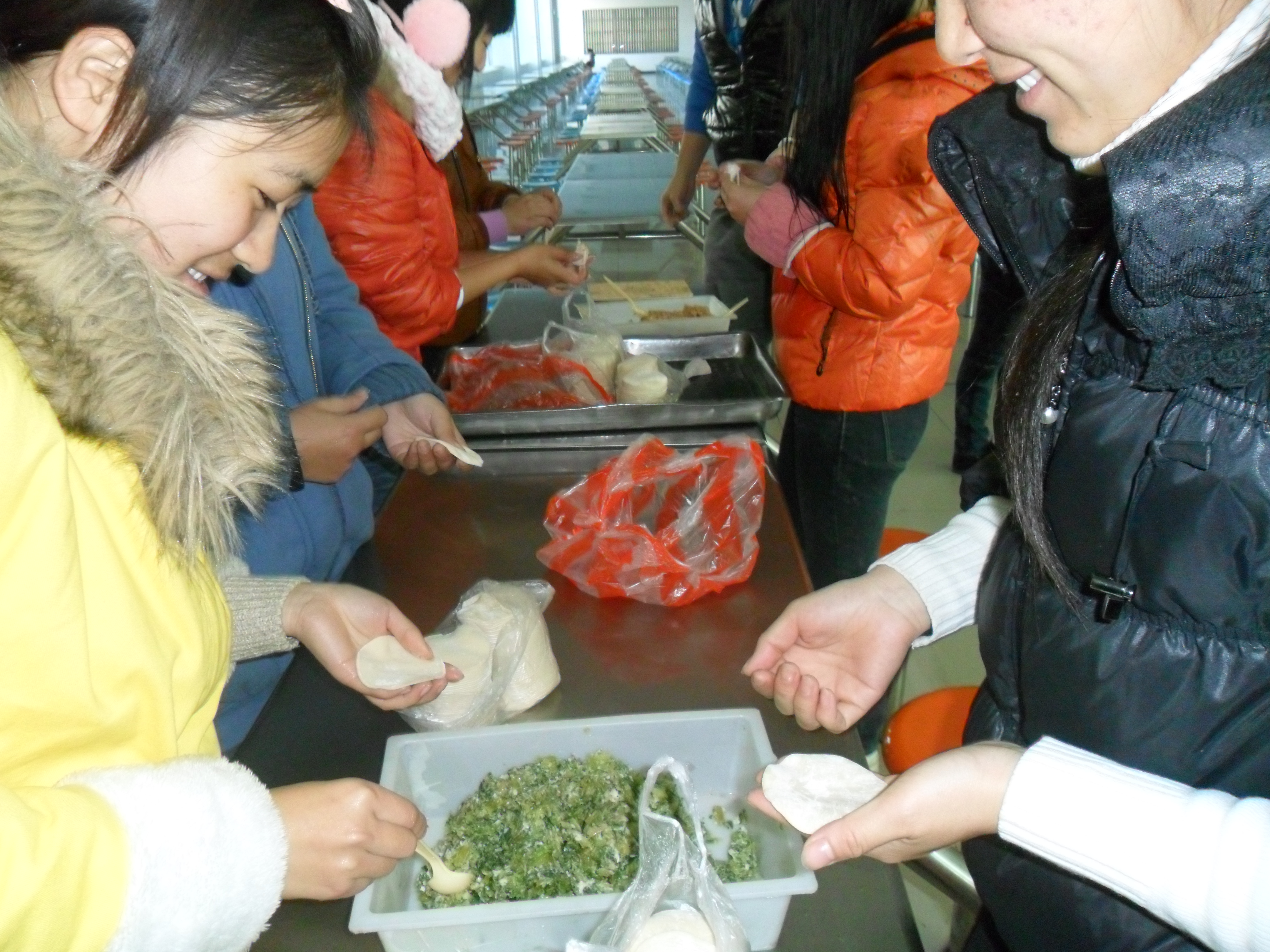 一大早,同学们热情高涨地来到食堂,接下来,就是要包饺子了。在整个过程中,不论大家会不会,都聚在了一起,不会包的和会的同学一起,开始了自己首次包饺子。包完了,每位同学吃着自己包的饺子,十分的高兴和满足。虽然整个活动的时间不长,但是每个人都有所收获,每个人都能在大学期间做一些有意义的事,从而锻炼自己。