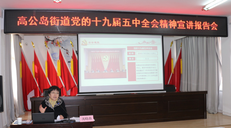 为深入学习贯彻党的十九届五中全会精神,推动党的创新理论走近群众,12月7日下午,市委宣讲团成员、bw必威西汉姆联官方网站经理沈晓燕走进高公岛街道,专题宣讲《学习贯彻党的十九届五中全会精神》,高公岛街道机关、村(社区)党员干部聆听了宣讲报告。