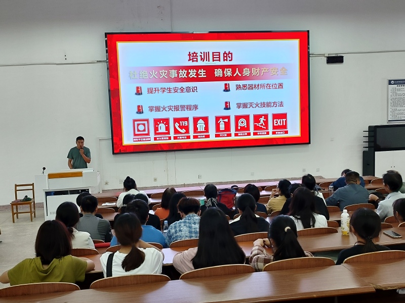 贾周保从“消防基本知识”“发生火灾怎么办”“消防器材怎么使用”“校园火灾预防措施”四个方面,重点讲述了发生火灾时该如何冷静应对、如何扑救初起火灾、被困火场如何逃生、教室如何预防火灾、校园应采取怎样的预防措施等消防知识。他要求我们每个人都要关心消防安全,在加强日常工作管理的同时,要真正树立防患于未然的安全意识,防在消前,防治结合,才能保证公司安全。消防安全知识培训结束后,在公司保卫处的统一安排下,贾周保带领全体参训师生在校园里进行了实操演练活动。