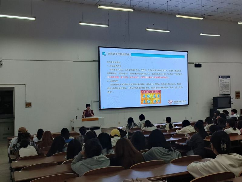 滕亚莉老师围绕志愿者工作指导精神、志愿者服务行为规范、无偿献血工作指南三个方面展开,重点讲解了无偿献血的基本常识、献血者输血要求、献血过程应该怎么做以及献血后的注意事项。在讲解过程中,滕老师与同学们分享了身边无偿献血的志愿服务事例与经验,勉励同学们赠人玫瑰,手有余香,以行动温暖世界,让青春在奉献中闪光。随后,陈娜老师分享了人工呼吸、心肺复苏(CPR+AED)、“海姆立克”急救法的操作流程等相关知识,并引导同学们现场进行操作演练。
