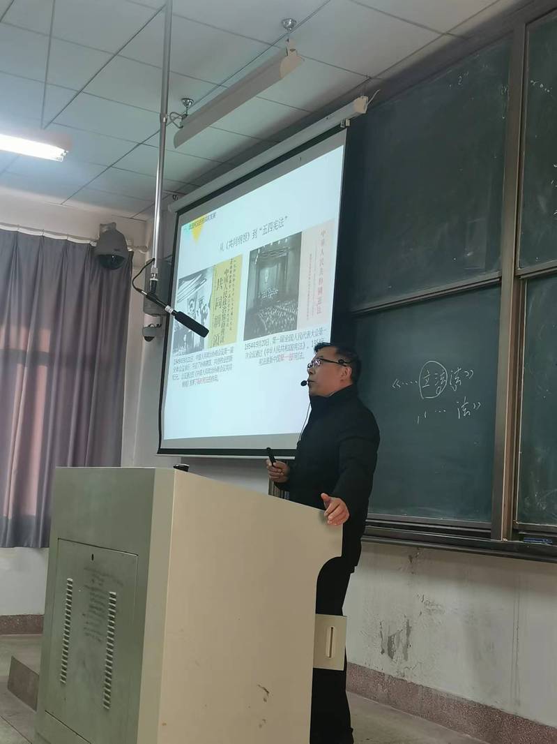 公司在《思想道德与法治》课程具体教学活动中,深刻把握教材内容背后宪法信仰培育的主线开展好理论教学。依托《思想道德与法治(2023年版)》教材的第六章第三节的第一、二部分内容,回顾中华人民共和国宪法形成和发展的历程、宪法在治国理政中的根本地位和宪法基本原则。从历史和理论两个逻辑层面,论述我国现行宪法是党领导人民制定的人民宪法,是规范国家权力运行、保障公民权利的根本大法,阐释如何通过民主集中制原则产生人民代表大会制度,实现了真正的人民当家作主。