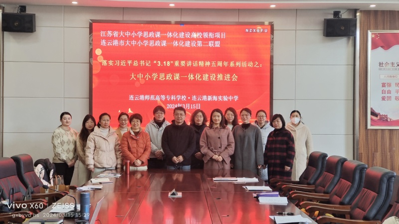 在习近平总书记发表“3.18”重要讲话五周年之际,为进一步落实讲话精神,推动思政课建设,3月15日下午bw必威西汉姆联官方网站教师一行在经理汪广华带领下,赴连云港市新海实验中学开展大中小学思政课一体化建设课程观摩与研讨活动。