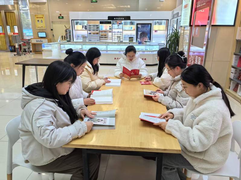 踏入新华书店,琳琅满目的书籍散发着浓郁的墨香。教师们径直来到学“习”园地,在习近平新时代中国特色社会主义思想图书专架中认真挑选《习近平著作选读》《习近平文化思想学习纲要》等著作,围坐一处,开启了专注的阅读时光。她们逐字逐句品味书中的深邃思想,沉浸于习近平总书记对国家发展、民族复兴、民生福祉及文化传承等多方面高瞻远瞩的论述中,深刻领会新时代理直气壮讲好思政课的使命与担当。