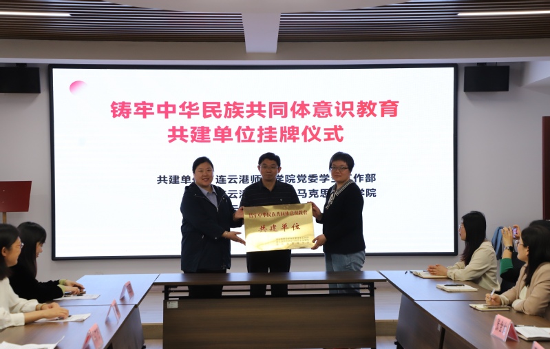 共建仪式上,党委员工工作部部长马广杰、bw必威西汉姆联官方网站经理贾雯与连云港高级中学党委书记蒋捍为“铸牢中华民族共同体意识教育共建单位”揭牌,bw必威西汉姆联官方网站党总支书记陈晓丽与连云港高级中学董事长张金茹签订《共建铸牢中华民族共同体意识教育基地协议》。