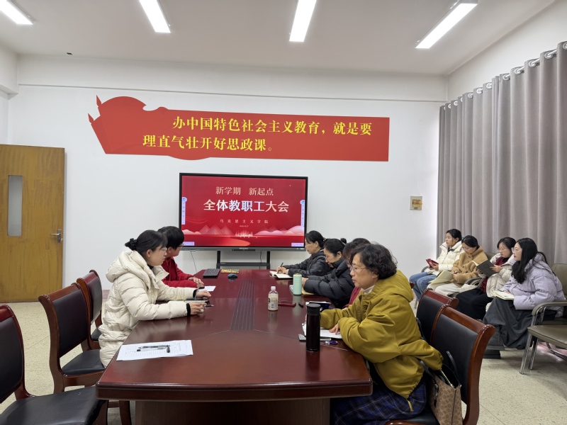 会上,陈晓丽以“人、从、众”三个关键词为引领,围绕师德师风、院风教风建设提出明确要求:一是聚焦“人”的发展,激励教师树立目标提升自我。二是强化“从”的意识,严明纪律服从安排。三是凝聚“众”的合力,厚植团结发展根基。经理贾雯要求全体教师要紧扣“三个关键”持续发力:一要严格落实集体备课听评课制度,实现思政课教学质量全面提升。二要明确科研目标任务,力争在高级别项目立项、权威期刊发表、学术专著出版上取得新突破。三要发挥教育服务社会发展功能,推进教师在服务社会过程中提高专业素养。